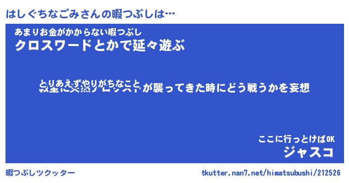 | 男性向けラノベタイトル風あだ名 | 『ハシグチナゴミアートオンライン』 |