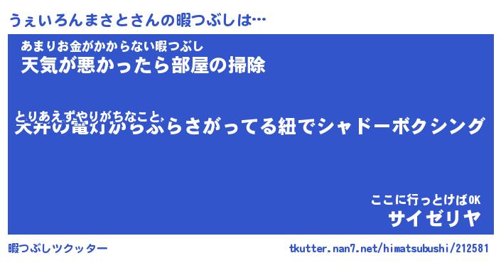 | ヘコむあだ名 | 『うぇにー』『なまこ酢』『うぇお』 |
