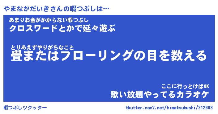 | 男性向けラノベタイトル風あだ名 | 『やまなかだいきの憂鬱』 |