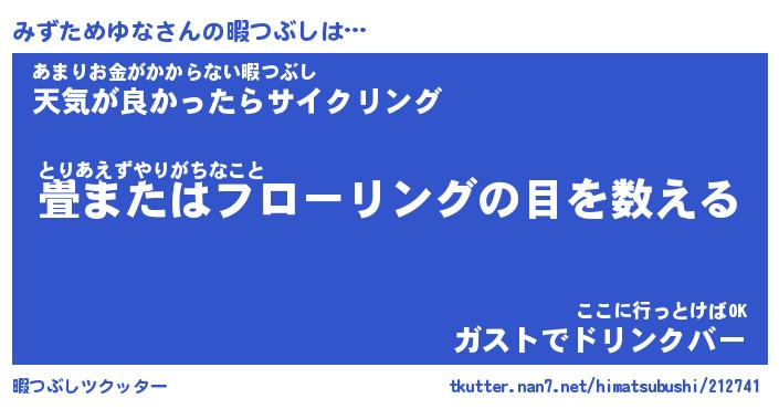 | 胡散臭い通販商品みたいなあだ名 | 『必ず成功するブレスレット…その名も「みずためゆな」』 |