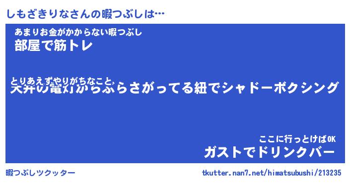 | ヘコむあだ名 | 『しももー』『つくし』『しもお』 |