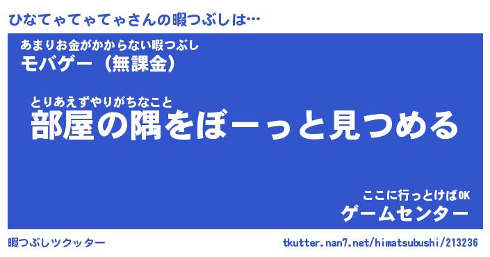 | 男性向けラノベタイトル風あだ名 | 『ひなてゃてゃてゃの憂鬱』 |