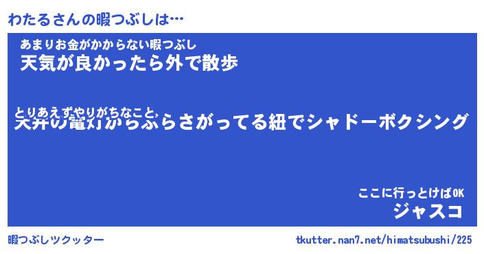 | ヘコむあだ名 | 『わたにゅー』『なまこ酢』『わたを』 |