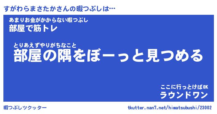| 男性向けラノベタイトル風あだ名 | 『すがわらまさたかの憂鬱』 |
