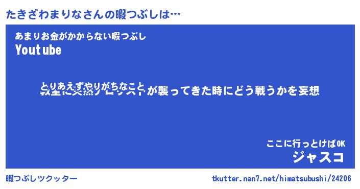 | 男性向けラノベタイトル風あだ名 | 『タキザワマリナアートオンライン』 |
