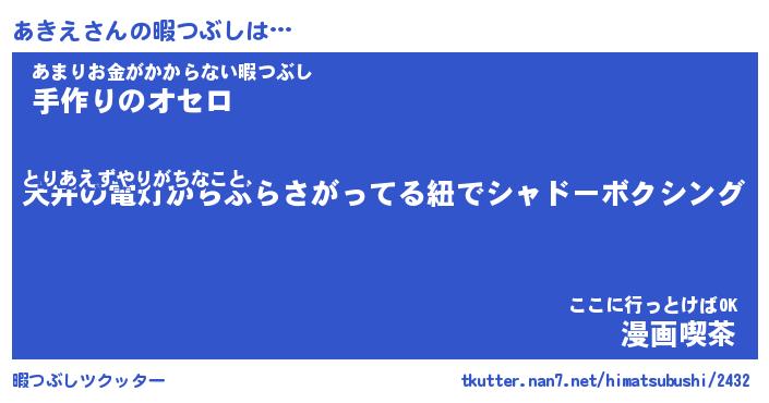 | 2回繰り返すあだ名 | 『あきあき』『ああきき』『ねばねば』 |