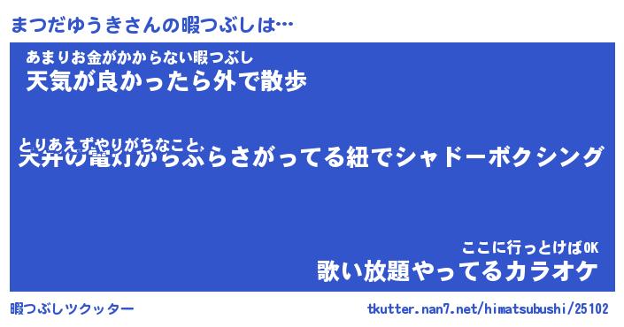 | 肩書あだ名 | 『まつだゆうき社長』『まつだゆうき団長』 |