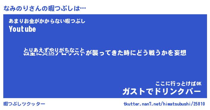| ヒーロー風カッコイイあだ名 | 『スーパーナミノリ』『炎刃騎士ナミ』 |