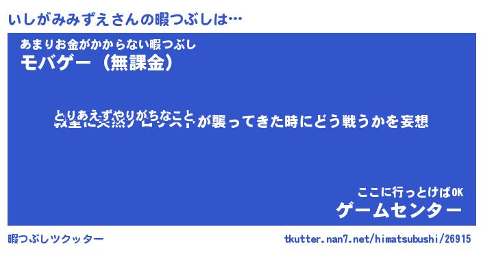 | 伝説のあだ名 | 『封印されしスナイパーいしがみみずえ』 |