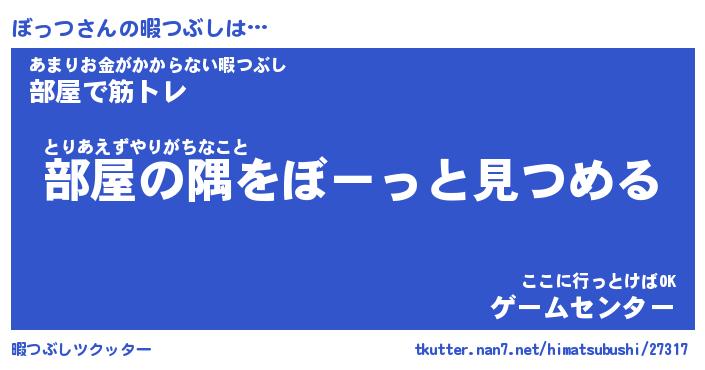 | 男性向けラノベタイトル風あだ名 | 『ぼっつの憂鬱』 |