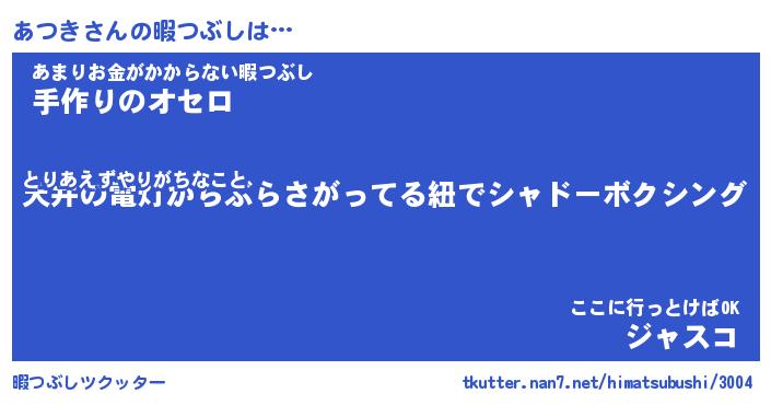 | ヘコむあだ名 | 『あつっふぃ~』『つくし』 |