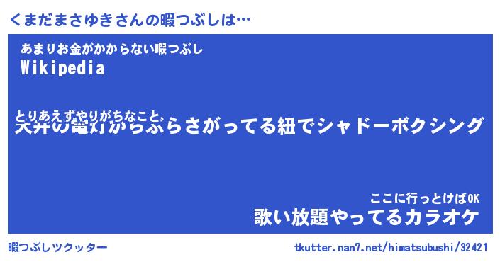 | 肩書あだ名 | 『くまだまさゆき御曹司』 |