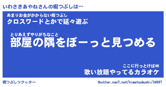| ヘコむあだ名 | 『いわにゅー』『酢こんぶ』『いわを』 |
