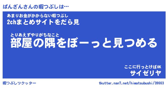 | 男性向けラノベタイトル風あだ名 | 『ぱんざんの憂鬱』 |