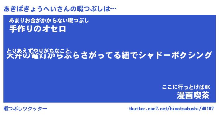 | ヘコむあだ名 | 『あきもー』『つくし』『あきお』 |