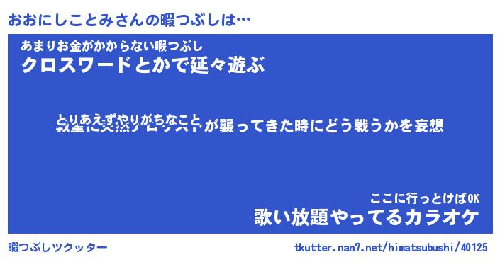 | 肩書あだ名 | 『おおにしことみ社長令嬢』 |
