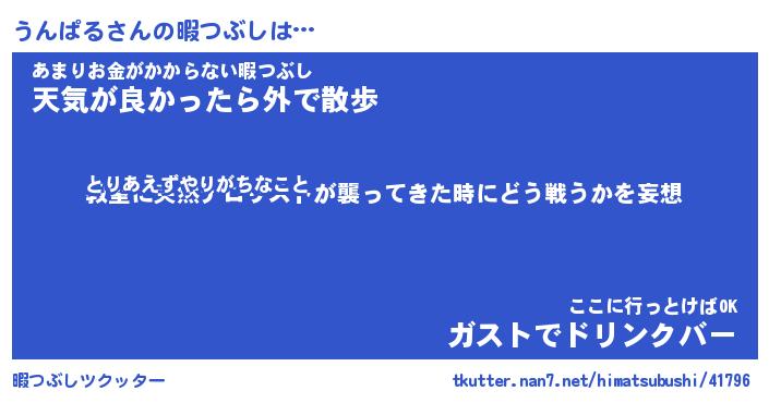 | 伝説のあだ名 | 『封印されしスナイパーうんぱる』 |