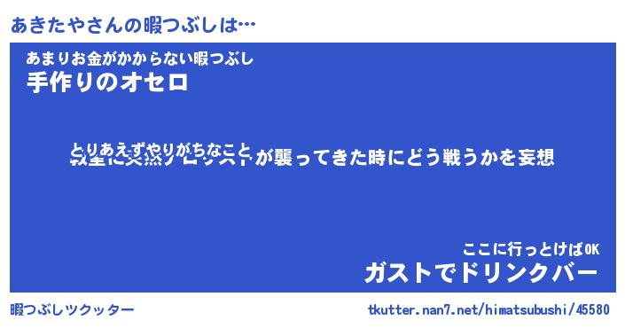 | ヒーロー風カッコイイあだ名 | 『スーパーアキタヤ』『炎刃騎士アキ』 |