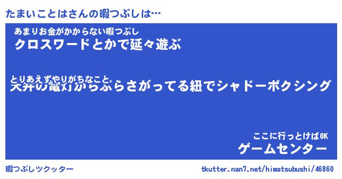 | ヒーロー風カッコイイあだ名 | 『スーパータマイコトハ』『魔戒騎士タマ』 |