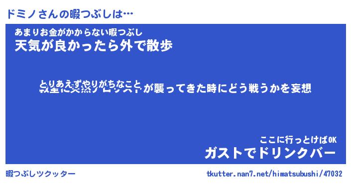 | ポケモン風あだ名 | 『ドミチュウ』『ドミノダネ』 |