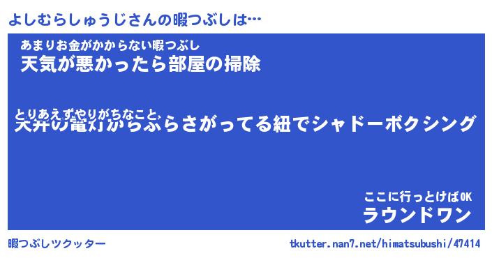 | 胡散臭い通販商品みたいなあだ名 | 『億万長者になれるブレスレット…その名も「よしむらしゅうじ」』 |