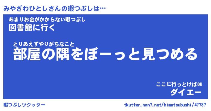 | 男性向けラノベタイトル風あだ名 | 『みやざわひとしの憂鬱』 |