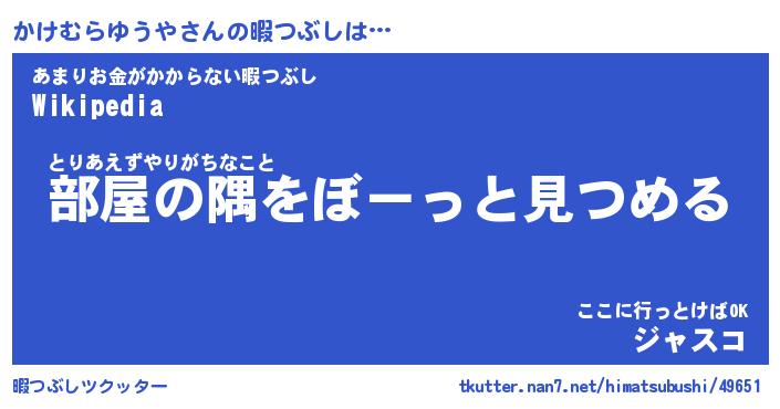 | 男性向けラノベタイトル風あだ名 | 『かけむらゆうやの憂鬱』 |