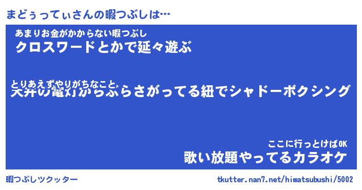 | 自動車の名前っぽいあだ名 | 『マドティマ』『マスラー』『マント』 |