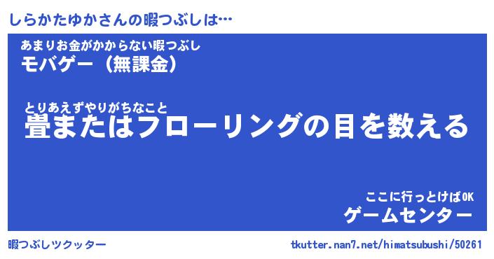 | 胡散臭い通販商品みたいなあだ名 | 『必ず成功するブレスレット…その名も「しらかたゆか」』 |