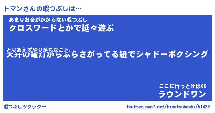 | 意味不明あだ名 | 『ペロリントマン』『トマンフォーエバー』 |