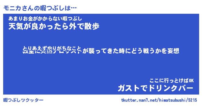 | ヘコむあだ名 | 『モニにー』『なまこ酢』『モニっ子』 |