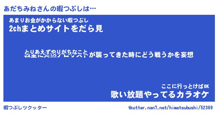 | 肩書あだ名 | 『あだちみねCEO』『あだちみね総理大臣』 |