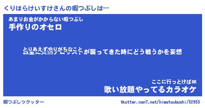 | 伝説のあだ名 | 『封印されしスナイパーくりはらけいすけ』 |