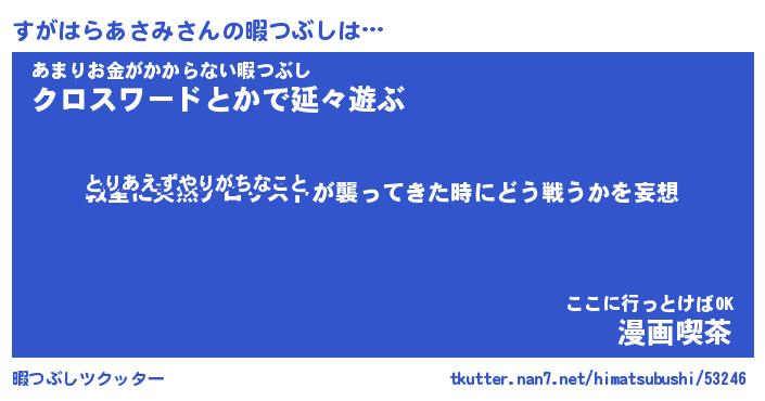 | ヒーロー風カッコイイあだ名 | 『スーパースガハラアサミ』 |