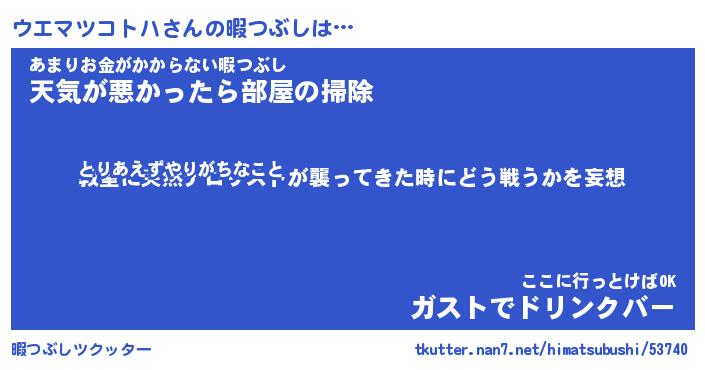 | 伝説のあだ名 | 『封印されしスナイパーウエマツコトハ』 |