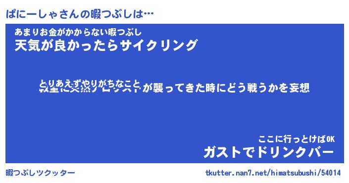 | 伝説のあだ名 | 『封印されしスナイパーぱにーしゃ』 |
