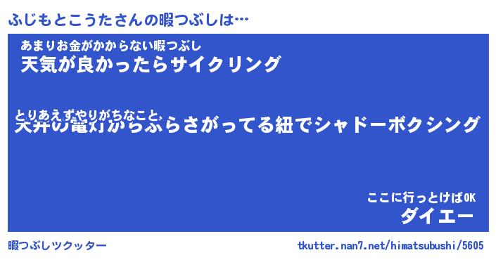 | ヒーロー風カッコイイあだ名 | 『スーパーフジモトコウタ』 |