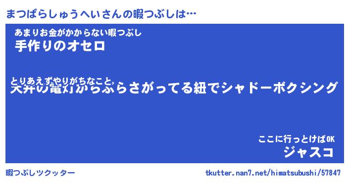 | ヒーロー風カッコイイあだ名 | 『スーパーマツバラシュウヘイ』 |