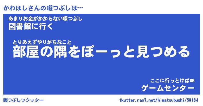 | 男性向けラノベタイトル風あだ名 | 『かわはしの憂鬱』 |