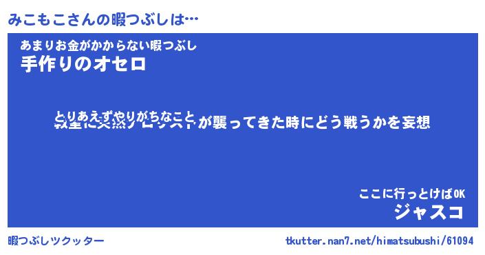 | 伝説のあだ名 | 『封印されしスナイパーみこもこ』 |