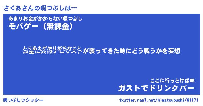 | 伝説のあだ名 | 『封印されしスナイパーさくあ』 |