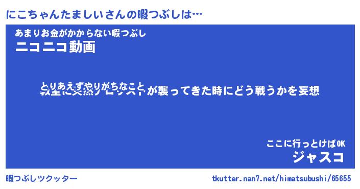| 男性向けラノベタイトル風あだ名 | 『ニコチャンタマシイアートオンライン』 |