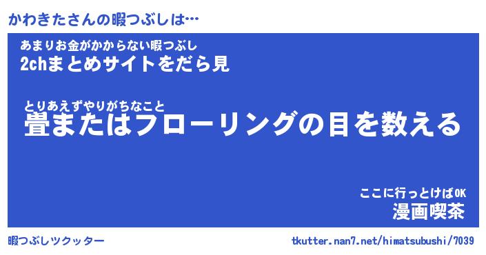 | 男性向けラノベタイトル風あだ名 | 『かわきたの憂鬱』 |