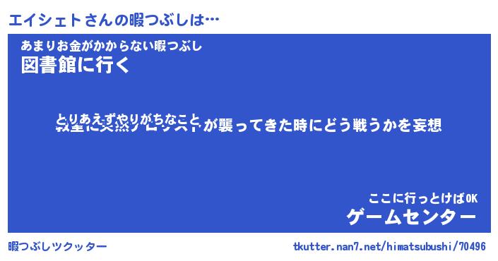| ヒーロー風カッコイイあだ名 | 『スーパーエイシェト』『暗黒騎士エイ』 |