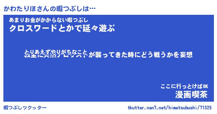 | ヒーロー風カッコイイあだ名 | 『スーパーカワタリホ』『天弓騎士カワ』 |