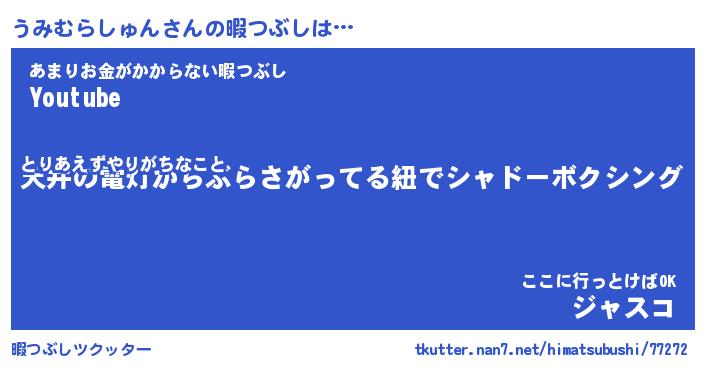 | 胡散臭い通販商品みたいなあだ名 | 『億万長者になれる水晶球…その名も「うみむらしゅん」』 |