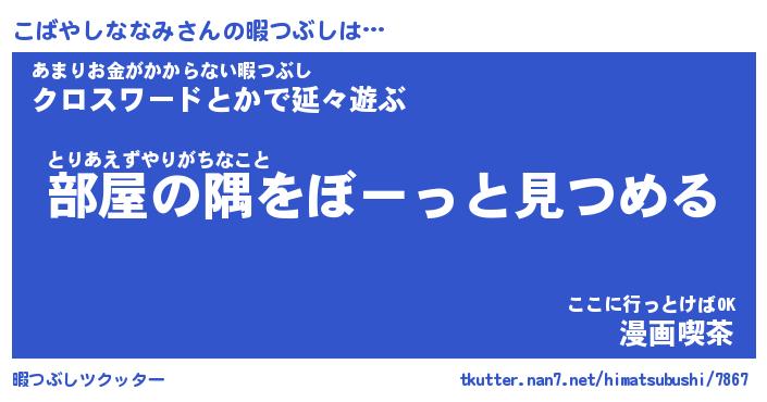 | 男性向けラノベタイトル風あだ名 | 『こばやしななみの憂鬱』 |