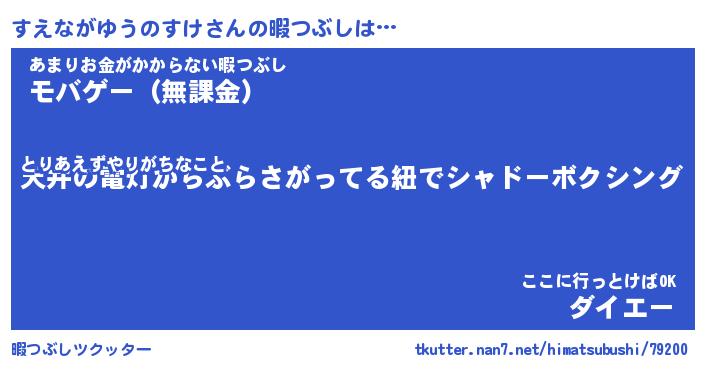 | ヒーロー風カッコイイあだ名 | 『スーパースエナガユウノスケ』 |