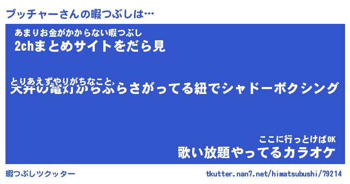 | ヒーロー風カッコイイあだ名 | 『スーパーブッチャー』『銀牙騎士ブッ』 |