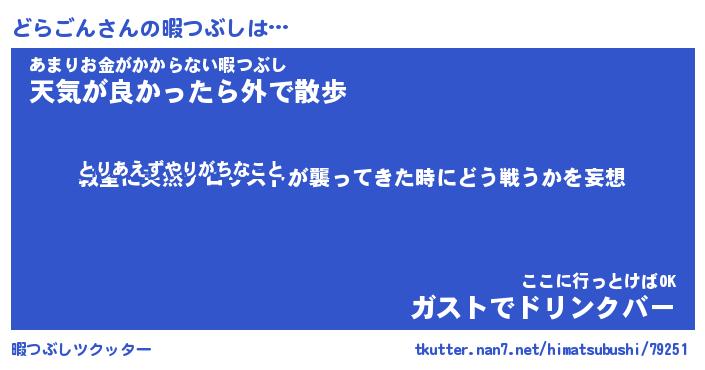 | ヘコむあだ名 | 『どらもー』『なまこ酢』『どらを』 |